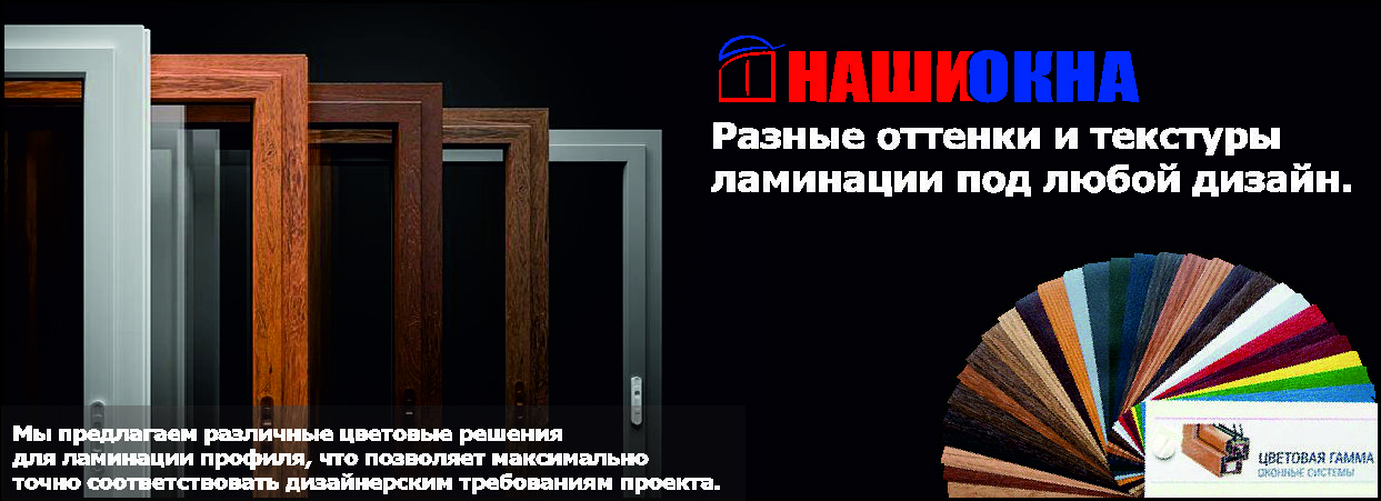 Возможность установки окон с профилем различных цветов и ламинированным под дерево.